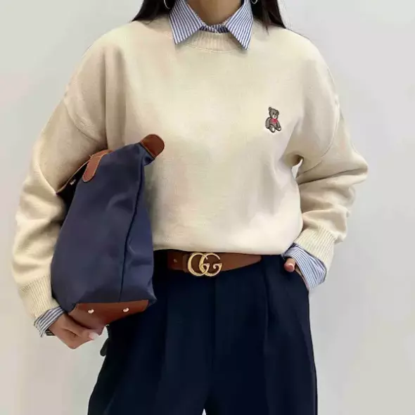این بافت دخترانه با ظاهری ساده اما بسیار جذاب طراحی شده است. آی بولک آن را در رنگهای پرطرفدار و متنوعی ارائه کرده است تا سلیقههای مختلف را پوشش دهد: مشکی، سرمهای، طوسی، کرم، چری و سبز نسکافهای. همین تنوع رنگ باعث میشود که بتوانید به راحتی آن را با شلوار جین، دامن یا حتی شلوار پارچهای ست کنید و استایلهای متنوعی داشته باشید. طراحی تدی بافت، هم حالت دخترانه و اسپرت دارد و هم برای استایلهای نیمهرسمی مناسب است.