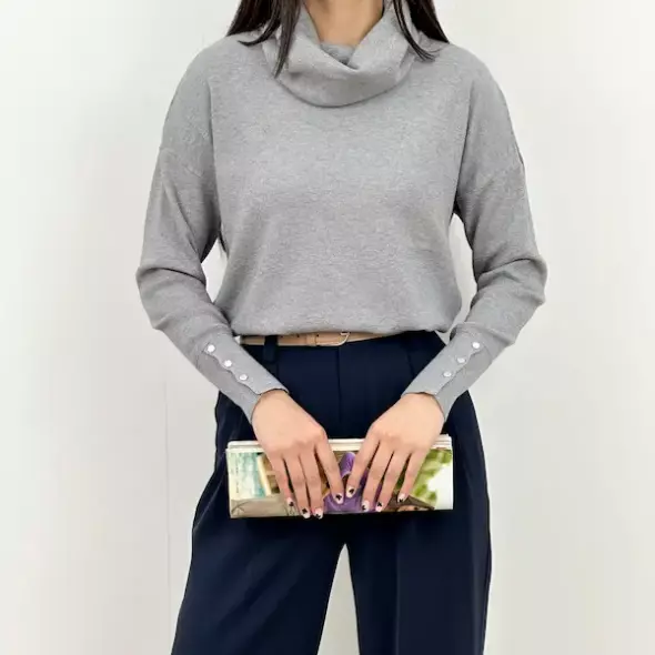 این بافت گپ با طراحی آزاد و فرم گشادش، حس راحتی و سبکی خاصی دارد. ترکیب رنگهای مشکی، قهوهای، آبی و طوسی در این مدل باعث میشود بتوانید بهراحتی آن را با انواع استایلهای روزمره یا نیمهرسمی ست کنید. یقه ساده و مدل آستین کاربردی آن جلوهای اسپرت اما شیک به لباس میدهد. این مدل از آن دسته لباسهایی است که در نگاه اول توجه را جلب میکند و بدون زحمت، استایل شما را جذاب و متفاوت نشان میدهد.