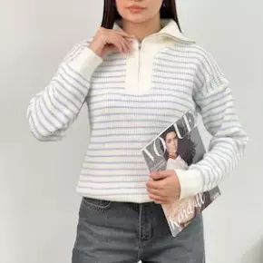 اگر هوا سردتر شد، می‌توانی روی آن یک کت چرم، بارانی یا پافر کوتاه از آی بولک بپوشی؛ ترکیبی که هم گرم است و هم از نظر زیبایی کاملاً ترندی و دخترانه. یقه نیم‌زیپ این پلیور باعث می‌شود حتی بدون شال هم ظاهر مرتب و شیکی داشته باشد.