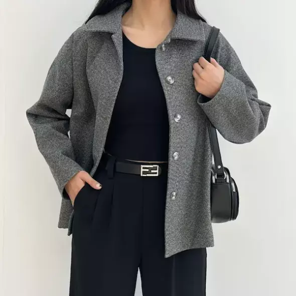 در نگاه اول، رنگهای ذغالی و طوسی این کت توجه شما را جلب میکند. ترکیب این دو رنگ، حالوهوایی شیک و مدرن دارد که بهراحتی با انواع لباسها و اکسسوریها ست میشود. بافت پارچه، ظاهری لطیف و در عین حال مقاوم دارد و جلوهی شاین ملایمی که روی آن کار شده، جذابیت خاصی به کت بخشیده است. این درخشش ملایم باعث میشود ظاهر شما در روزهای سرد سال هم پرانرژی و خاص بماند.