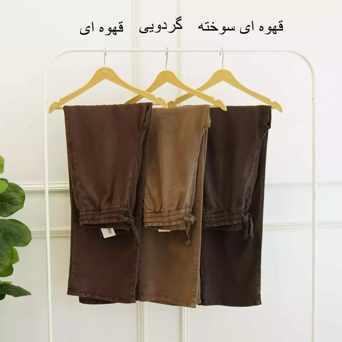 تنسل (نوعی پارچه کتان سیلک بسیار لخت و نرم) میباشد. قد شلوار بین 112 الی 117 سانتی متر متغیر میباشد سایزبندی از 30 تا 34 و مناسب برای 36 تا 46