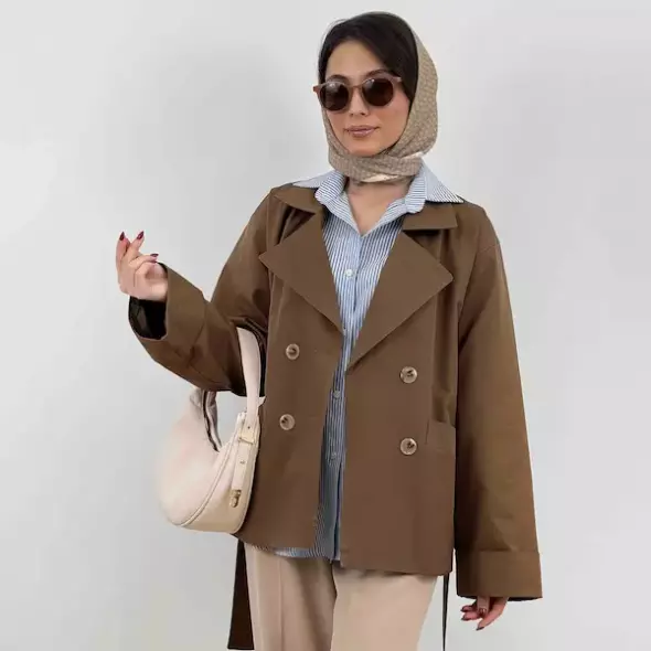 این ترنچ کت با طراحی کلاسیک اما مدرن خود، به راحتی با انواع استایلها هماهنگ میشود. فرم دوخت آن طوری است که به خوبی روی بدن مینشیند و ظاهری منظم و شیک به شما میدهد. وجود کمربند در قسمت کمر، علاوه بر جلوهی زنانهتر، به شما این امکان را میدهد که فرم دلخواه خود را ایجاد کنید. رنگبندی جذاب شامل مشکی، قهوهای، یشمی و خاکی به شما حق انتخاب میدهد تا با سلیقه و استایل شخصیتان هماهنگترین رنگ را انتخاب کنید. هر کدام از این رنگها به تنهایی میتوانند مکملی عالی برای استایل پاییزی شما باشند.