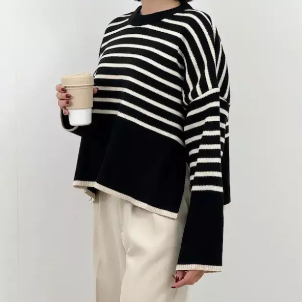 این بافت دوستداشتنی به راحتی با انواع استایلها هماهنگ میشود. برای یک استایل روزمره و کژوال، میتوانید آن را با شلوار جین یا لگ مشکی ترکیب کنید. اگر به دنبال تیپی شیکتر هستید، ترکیب آن با دامن یا بوت بلند، انتخابی خاص و چشمنواز خواهد بود. رنگ خنثی و طراحی ساده آن باعث میشود که بهراحتی با اکسسوریهای مختلف مثل کیف و شال ست شود. بافت راهراه 1007021 از آی بولک، گزینهای عالی برای دورهمیهای دوستانه، قرارهای غیررسمی یا حتی محل کار است.