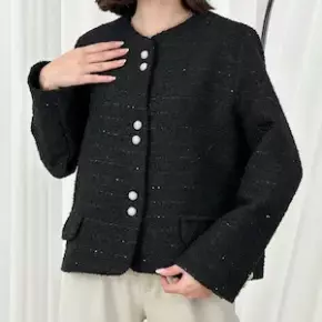 پولکها بهصورت رگههای ظریف داخل بافت پارچه قرار گرفتهاند و جلوهای ملایم و شیک به کت میدهند، بدون اینکه ظاهر آن شلوغ شود.