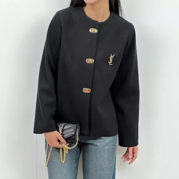 کت سن لوران 1007012 با طراحی کلاسیک اما مدرن خود، ترکیبی از سادگی و جذابیت را ارائه می‌دهد. در نگاه اول، فرم خوش‌دوخت و ایستای آن روی بدن جلب توجه می‌کند. این کت در چهار رنگ پرطرفدار مشکی، قهوه‌ای، استخوانی و نسکافه‌ای عرضه می‌شود تا بتوانید با توجه به سلیقه و استایل خود بهترین انتخاب را داشته باشید. رنگ مشکی آن برای موقعیت‌های رسمی عالی است، در حالی که رنگ نسکافه‌ای و استخوانی ظاهری گرم و لطیف‌تر دارند. طراحی دکمه‌های قلابی چرخان یا turn lock جلوه‌ای خاص به کت بخشیده و آن را از مدل‌های معمولی متمایز کرده است.