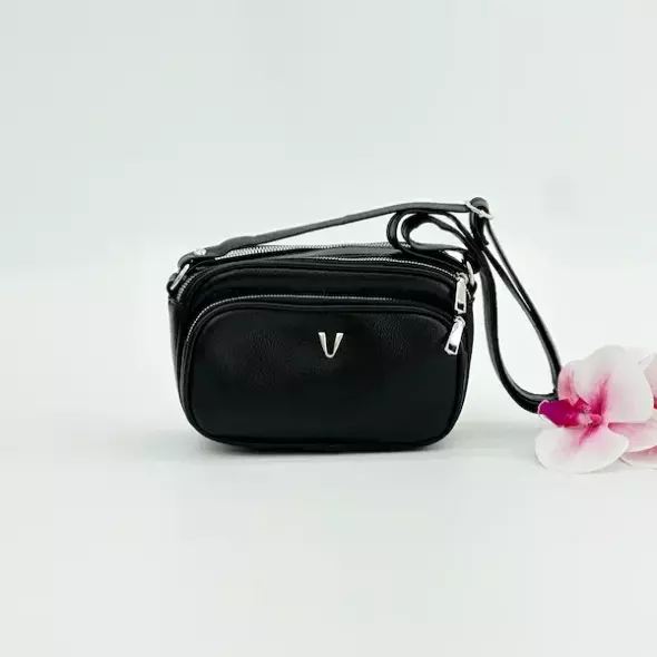 این کیف کاربردی با رنگ جذاب مشکی، بهراحتی با هر تیپ و لباسی ست میشود. طراحی مینیمال، سه زیپ با سه اتاقک کاربردی و یراقهای نقرهای براق، ظاهری لوکس و خاص ایجاد کردهاند. در قسمت جلوی کیف، لوگوی ظریف V نمایی ساده اما شیک به آن بخشیده است.