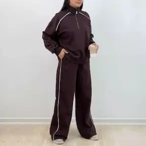 این ست اسپرت در پنج رنگ جذاب مشکی، قهوهای، سرمهای، استخوانی و زرشکی تولید شده تا بتوانید آن را متناسب با سلیقه و استایلتان انتخاب کنید. طراحی کار کاملاً ساده، تمیز و شیک است؛ مدل بلوز آزاد و راحت و شلوار با تنخور بگ طراحی شده که همین موضوع باعث شده این ست هم برای استایلهای مینیمال و دخترانه مناسب باشد و هم برای موقعیتهای روزمره که راحتی اولویت اصلی است. برشها استاندارد و بدون شلوغی هستند و بهراحتی میتوانید با کتونیهای سفید، بوتهای کوتاه و حتی کاپشنهای فوتر و پافر آن را ست کنید. این ست ظاهر یکنواخت و منظم دارد و به دلیل رنگبندی کاربردی، هم برای دانشگاه و بیرونرفتها مناسب است و هم برای تایم استراحت و خانه.