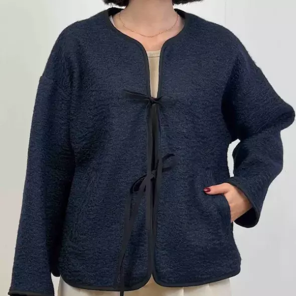 این کت به صورت فری سایز طراحی شده و برای سایزهای 36 تا 42 کاملا مناسب است. برش آزاد و طراحی استاندارد آن باعث شده تا روی تن، فرم زیبایی داشته باشد و در عین راحتی، شیک و خوشاستایل دیده شود.