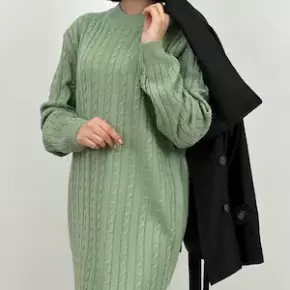این پیراهن بافت در رنگهای مشکی، سبز پاستلی، کاراملی، استخوانی، طوسی، نسکافهای و یشمی تولید شده که هرکدام بهنوعی با استایل پاییزی و زمستانی هماهنگاند. رنگهای گرم و ملایم این مجموعه باعث میشوند هم در استایلهای روزمره و هم در موقعیتهای نیمهرسمی بدرخشی. طراحی آن ساده اما چشمگیر است؛ فرم آزاد و خوشدوختی دارد که بهراحتی روی بدن مینشیند و جلوهای کشیده و ظریف به استایل تو میدهد. قد پیراهن کمی بلندتر از بافتهای معمولی است تا علاوهبر پوشانندگی، حس راحتی بیشتری هم ایجاد کند.