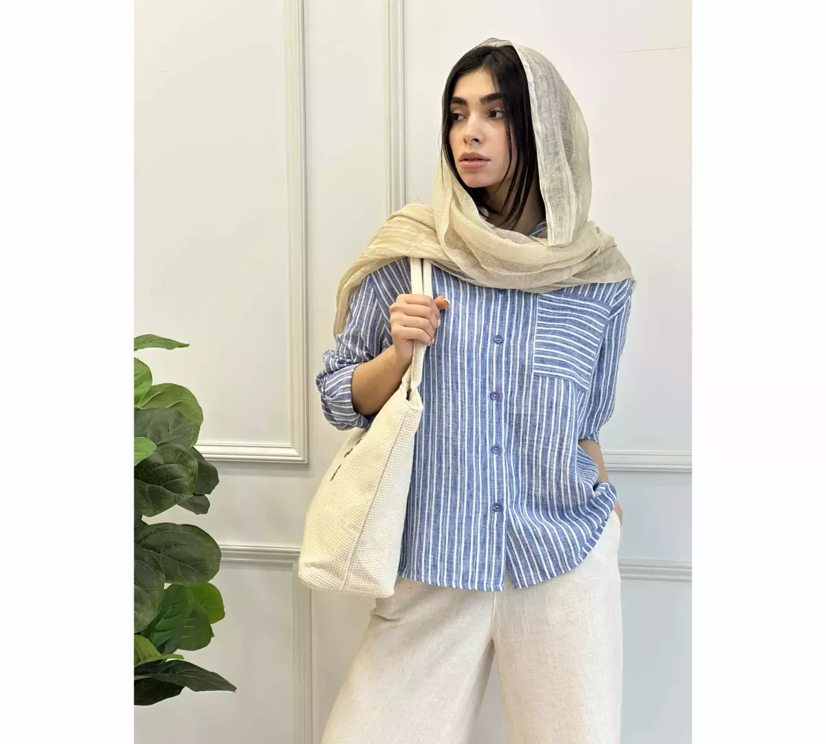 شومیز لینن باکیفیت وارداتی میباشد. سایزبندی فری سایز مناسب برای 36 تا 44